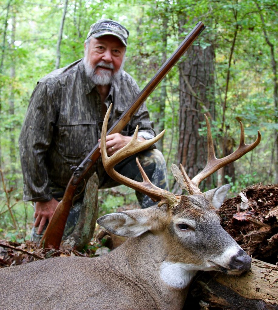 I was carrying my favorite woods-walking rifle, a .45 caliber flintlock roundball gun my mentor Schley Howard and I had built in 1962, shaping the stock to fit so I shot where I looked. This was my 55th season hunting with this rifle, and it had taken a good many deer, but never a really big buck. It lay across my lap, pointed toward the trail from the swamp, primed and ready.