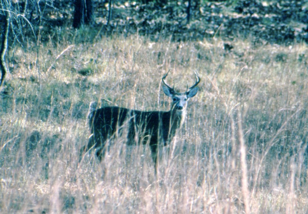 As the light started fading, so did my hope. In the very last shooting light, he came loping from the cover right along the same trail as before, no doubt headed towards the peanuts. His rack was wide and tall. He was huge! He hit the scent line I had laid across the trail and locked down. I came up with the my rifle, looked through the scope, and the trees totally blocked his chest area, leaving only his head, neck and butt exposed. His tail stuck straight out, as did his head. For that moment, he was frozen.